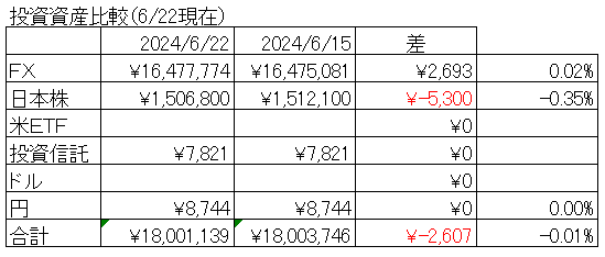 投資信託は楽天がメンテナンスで見れ無かったのですが、そんなに変わらないと